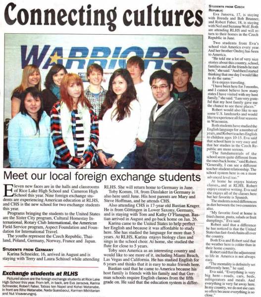 Zde si můžete přečíst, co o nás exchange studentech píšou v Rice Lake ve zdejších novinách.