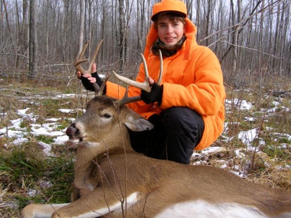 Já měl ale „kliku“, mně se to opravdu poštěstilo. Při nevěřícném pohledu na to ohromné zvíře mi hlavou běžel výčet všech typických chyb lovců – začátečníků, a tak jsem se snažil přemýšlet a být trpělivý. A když se asi po 45 minutách pečlivého sledování jelenec dostal do tzv. učebnicové pozice, zmáčkl jsem spoušť. Okamžitě zmizel. O patnáct minut později jsme se ho vydali hledat. Nedostal se daleko a stopování se tak nekonalo. Ani ne po dvaceti metrech jsme našli jeho nehybné ležící tělo. To byla ta zajímavější a zábavnější část. Teď jsme museli odtáhnout asi osmdesátikilový úlovek na vozíku určeném přesně pro tyto účely z lesa ven. A i když se teplota blížila až k mínus patnácti stupňům celsia, věřte mi, že jsme se pěkně zapotili. Nemůžu popřít, že jsem té lovecké vášni taky na chvíli propadl. Ale velkou radost jsem cítil hlavně ve chvíli, kdy se společně se mnou z mého nevšedního úlovku radovala má skvělá hostitelská rodina Genereaux a já se na chvíli stal jejich „hrdinou“, na kterého jsou pyšní.